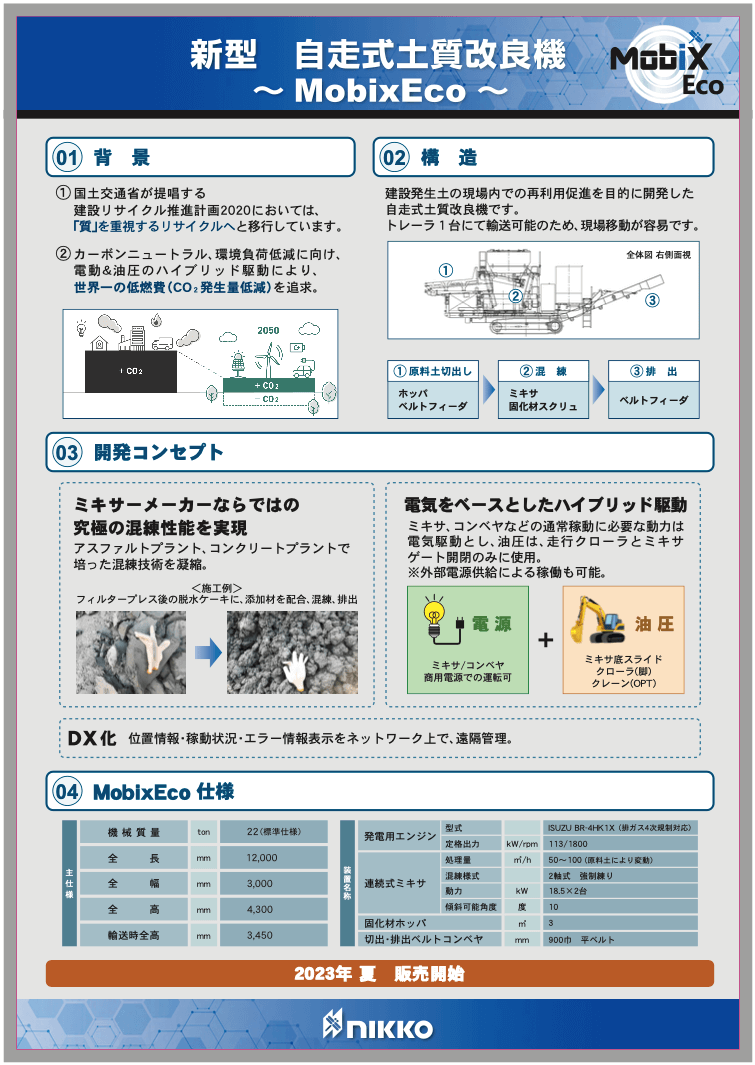 昭和鋼機では固化材サイロを自社で設計製作しておりますので、日工株式会社の自走式土質改良機Mobixと固化材サイロとをセットで販売することができます。「自走式土質改良機の導入を検討している」、「固化材サイロも一緒に欲しい」というご要望があればぜひ一度お問い合わせください。
