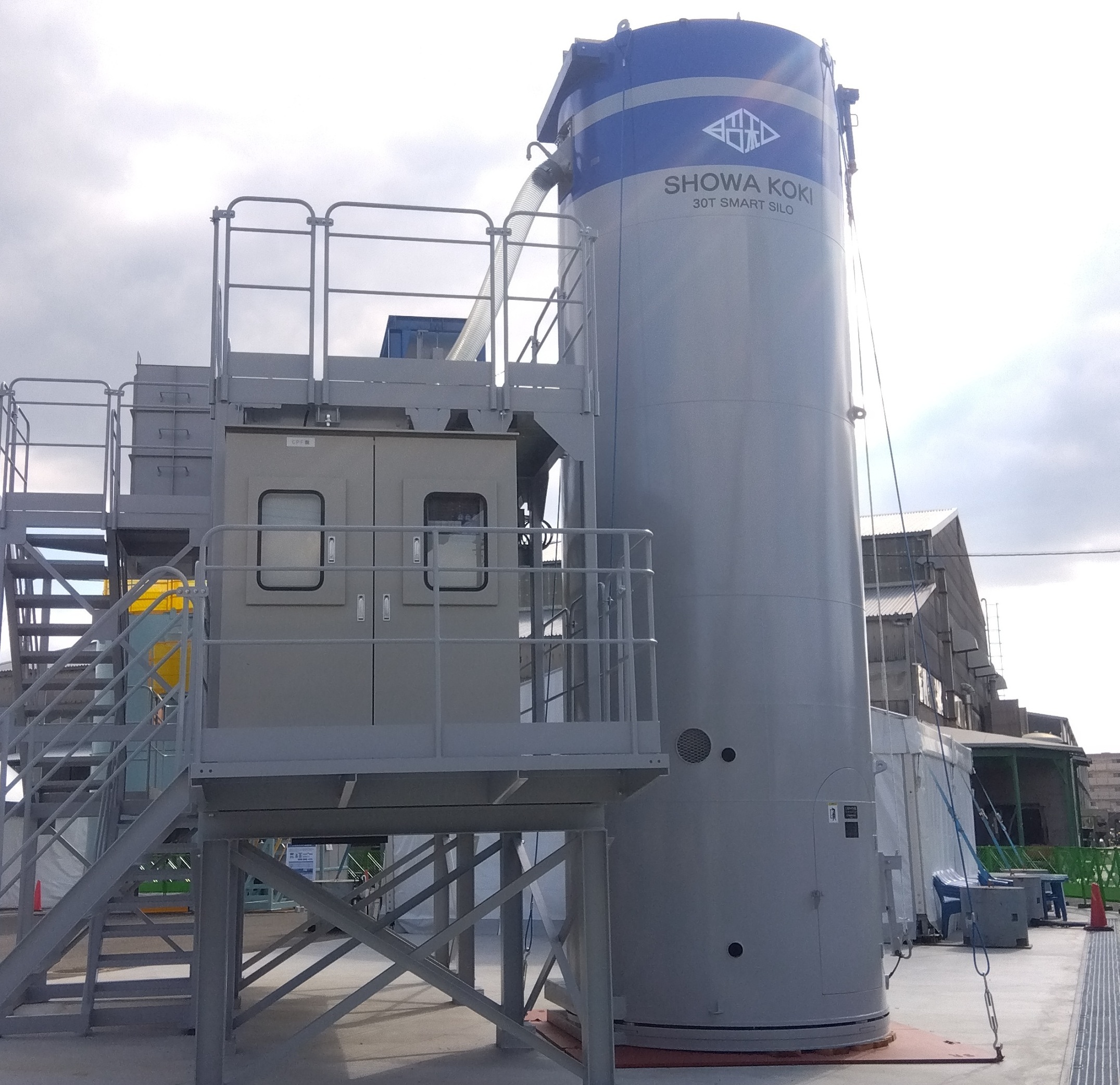 スマートサイロをONZEMIXのすぐ横に設置すれば、コンクリートの原料であるセメントの貯蔵・供給設備になります。したがって、今回のようなコラボレーション出展が実現しました。