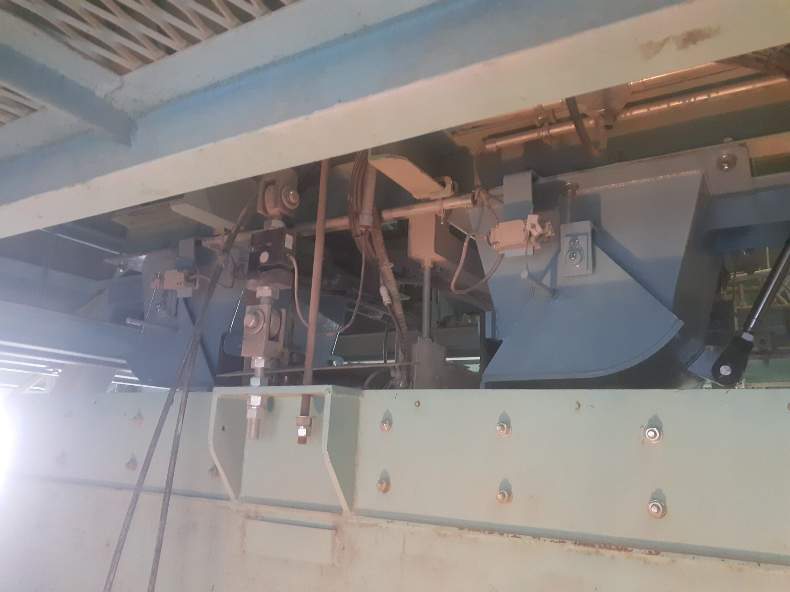 既設のゲートを取り外しています。ゲートの上には貯蔵ビン、下には計量器があり、隙間が十分ではありません。そのため、写真のように隙間を縫うようにして既設と新品のゲートを出し入れしなければならず大変でした。